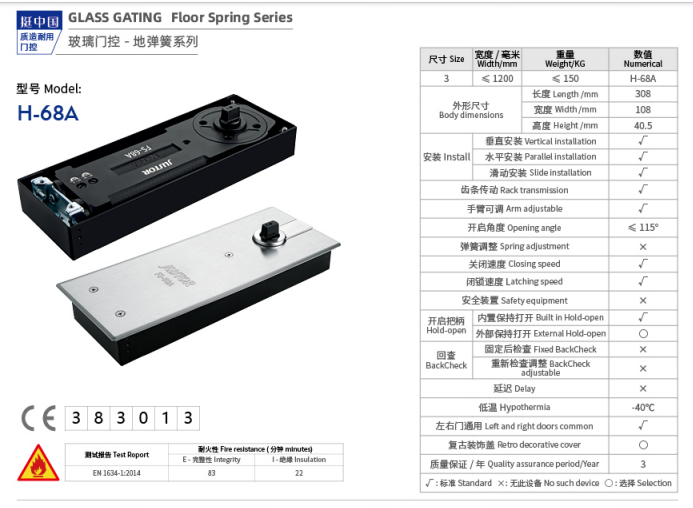 拥有停门定位、自动缓冲闭门功能