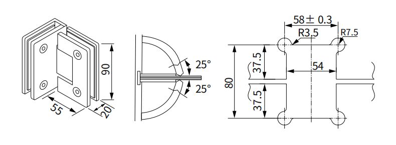 90°双边浴室夹