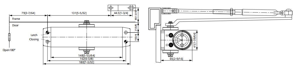 机体由铝合金压铸件制成,并由两层清漆保护。 全液压控制, 两段式调速,形状大方,结构合理,性能优良,广泛用于安防,商业住宅,支持多种安装方式,常见的应用场景是安装在木门和铝门上。
