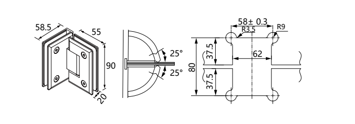 90°双边斜边浴室夹-J9集团五金科技(广东)有限公司